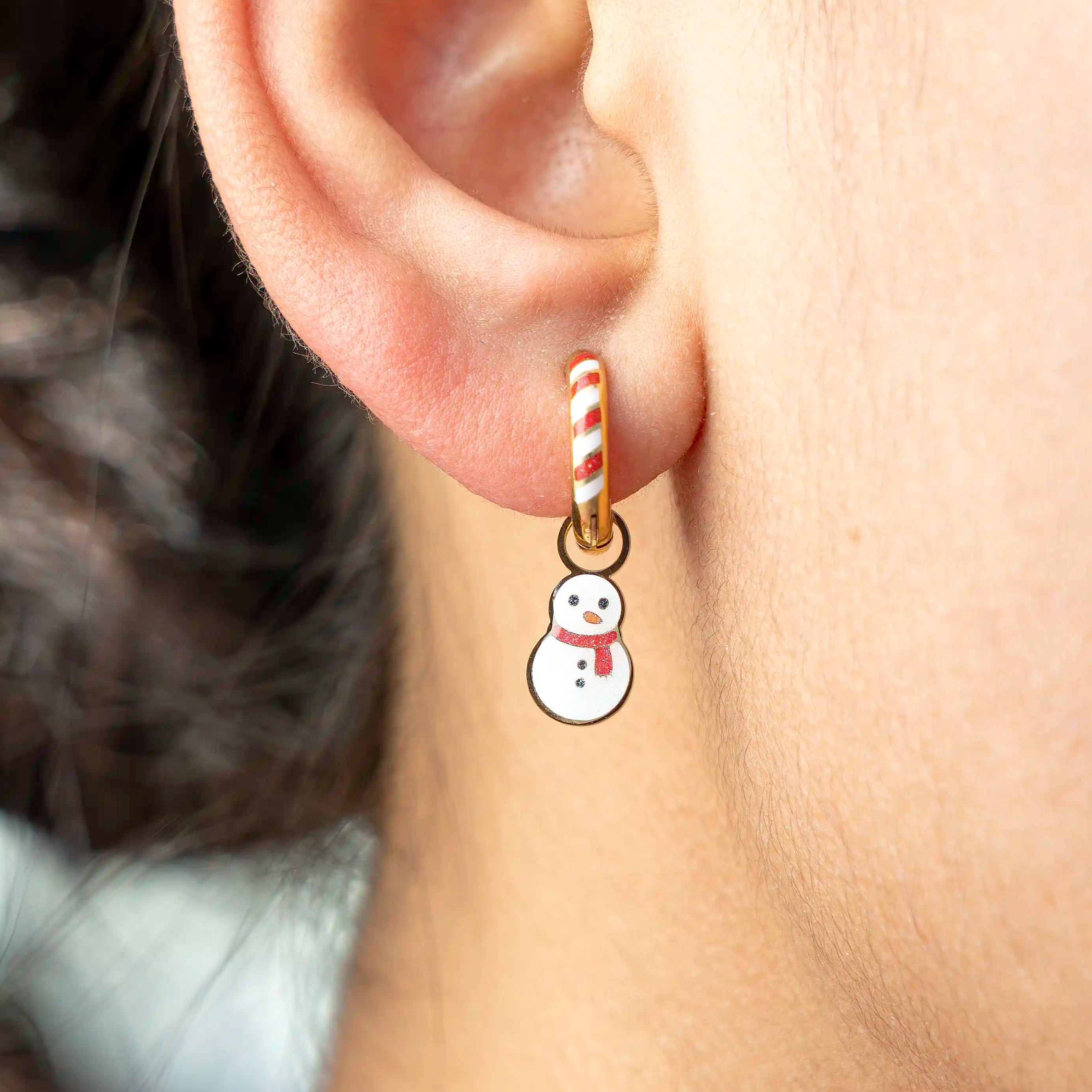 Add a frosty twist with Snowman Sparkle Huggie Hoop Charms! Lightweight, hypoallergenic, and waterproof, they fit all hoops in our store and any up to 3mm thick — the perfect touch of winter sparkle for your ear stack.