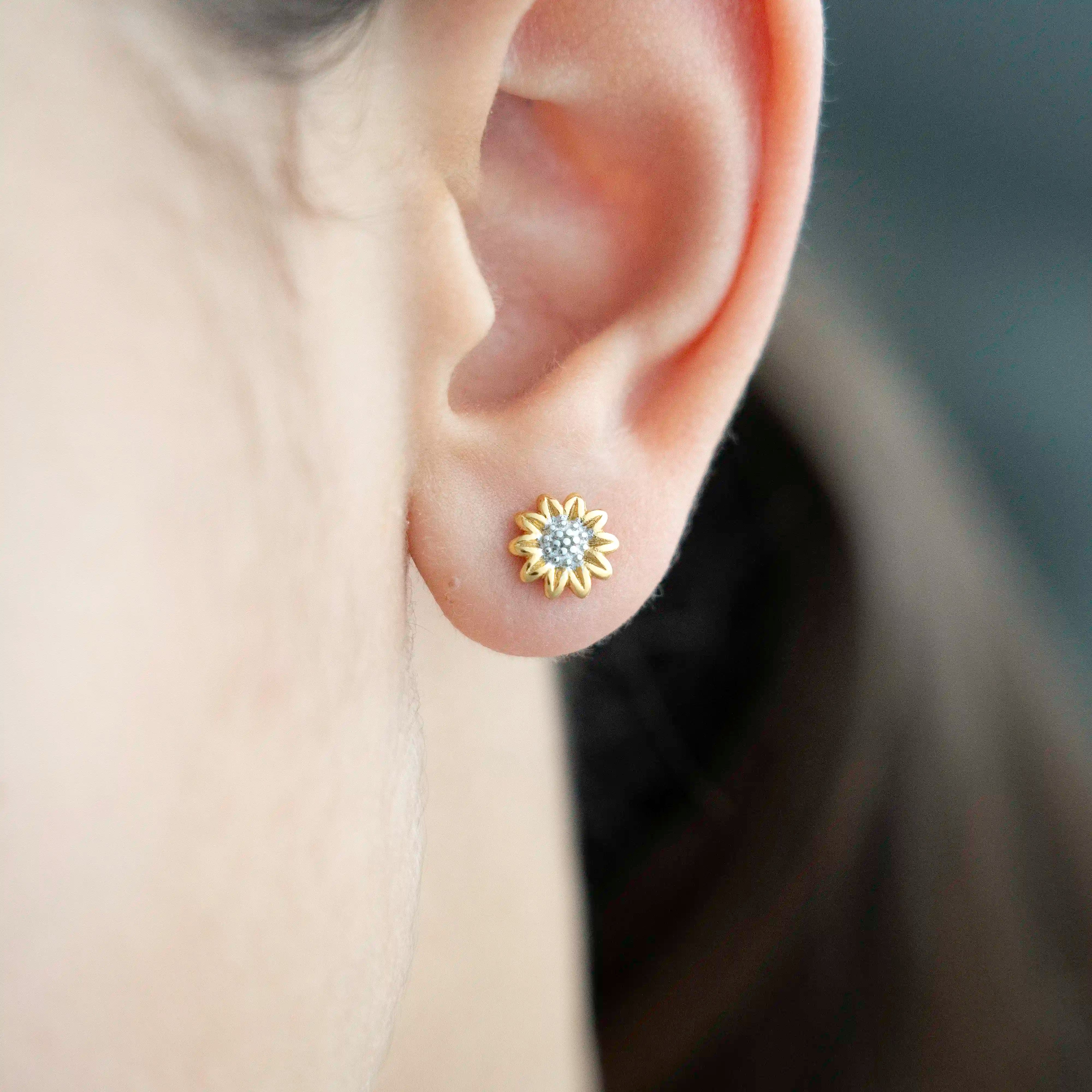 Bright, sculpted, and impossible to miss. These Two-Tone Sunflower Studs feature radiant gold petals surrounding a polished silver center, while the molded design gives the flower real dimension and shine. Crafted in durable stainless steel with 18K gold plating, they are lightweight, comfortable, and made to keep their glow.