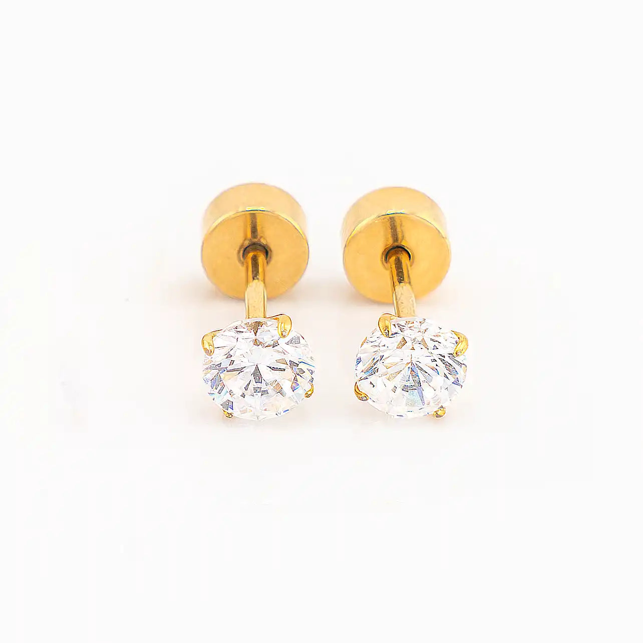 Diamond 4mm CZ Solitaire Studs 18K Gold Plated Titanium